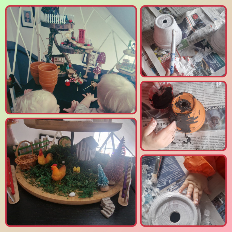 Heute Nacht hat unser Wichtel Lilu eine ganz besondere Aktion gestartet: Er hat heimlich die Hühner aus dem Weihnachtsdorf geholt! Die Hühner haben sich schon prima bei uns eingelebt und fühlen sich offensichtlich wohl. In den letzten Stunden haben sie fleißig Eier gelegt, was uns natürlich sehr gefreut hat. Doch das war noch nicht alles, was Lilu uns zu bieten hatte. Als Überraschung brachte er uns einige Tontöpfe, die wir kreativ bemalen durften. Jeder von uns hat sich etwas Schönes einfallen lassen, um den Töpfen einen ganz persönlichen Toutch zu verleihen. Aber pssst, das bleibt unser kleines Geheimnis! Die bemalten Töpfe sind nämlich als Weihnachtsgeschenke für unsere Eltern gedacht. Wir können es kaum erwarten, zu sehen, wie sie reagieren.